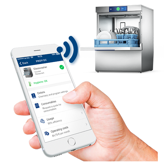 The new HOBART WASHSMART app provides you with a comprehensive overview of the status of your glasswasher free of charge for 5 years. Among other features, the app informs you well in advance of maintenance due dates and indicates the current operating costs and chemical consumption.