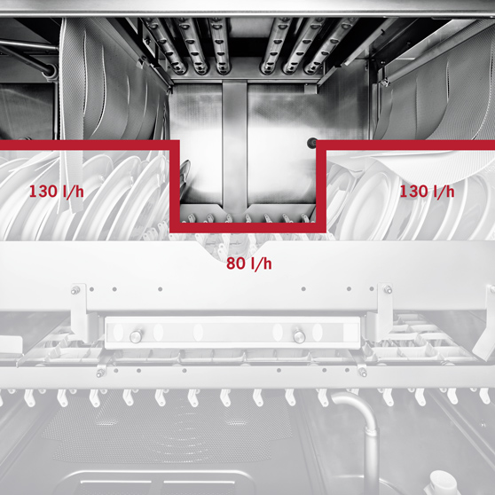 YOUR BENEFIT: This for instance avoids unnecessarily high water consumption at low machine speeds. The wash ware is always cleaned with the same amount of water irrespective of the machine speed, thus achieving an even wash result.